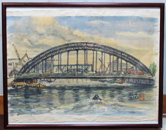 額は絵の保護も含めた仮のものです。良い額に合わせてください。 若干、ガラスの映り込みがあります。 以下全てガラスの上から撮影しております。 はみ出している紙は本紙ではなく裏打ちの紙です。 注文番号:NO.9825 閉じる