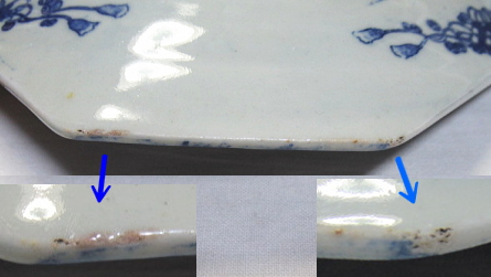 側面下側(裏側)にある小削げと裏側の拡大画像。
