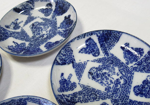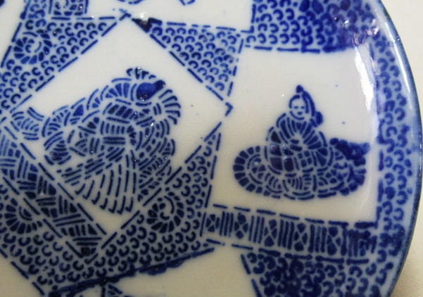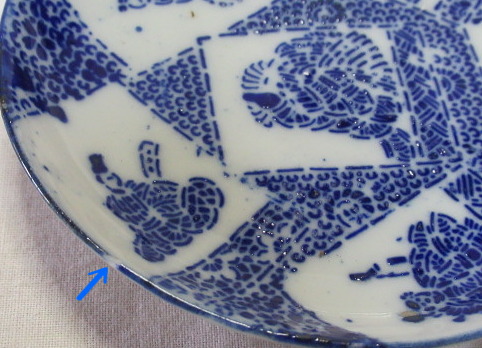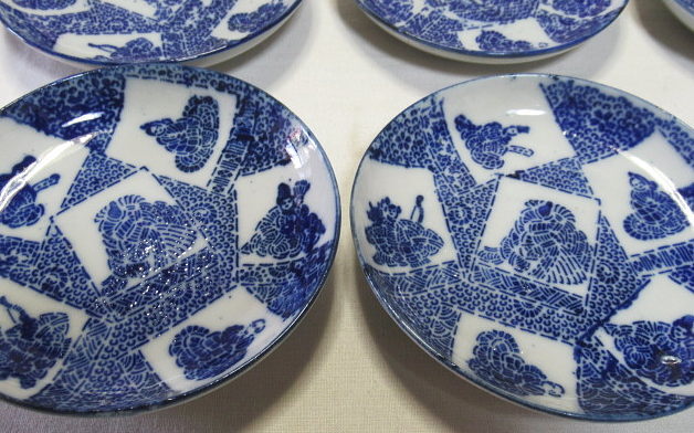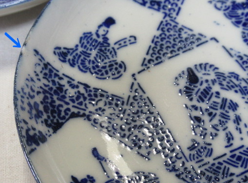小野小町・僧正遍照 文屋康秀・喜撰法師 大伴黒主・在原業平 おまけでお付けする3枚です。口縁に大変軽微な削げがありますが、殆ど気になりません。 削げの拡大画像。 削げの拡大画像。 削げの拡大画像。黄矢印は釉爆ぜで削げではありません。 注文番号:NO.9916-B 閉じる
