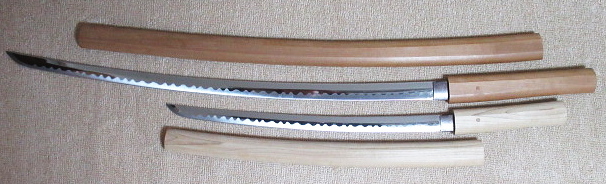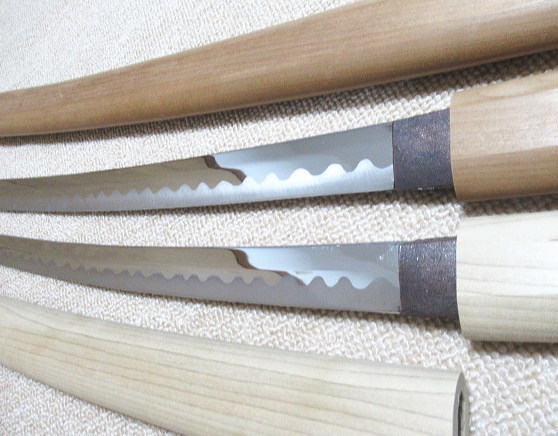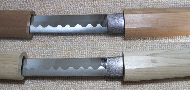 とても良い状態ですが、小刀の方に僅かに刃こぼれ(囲み線の中)があります。