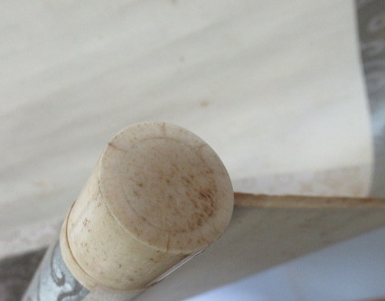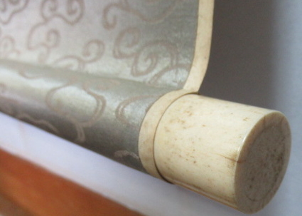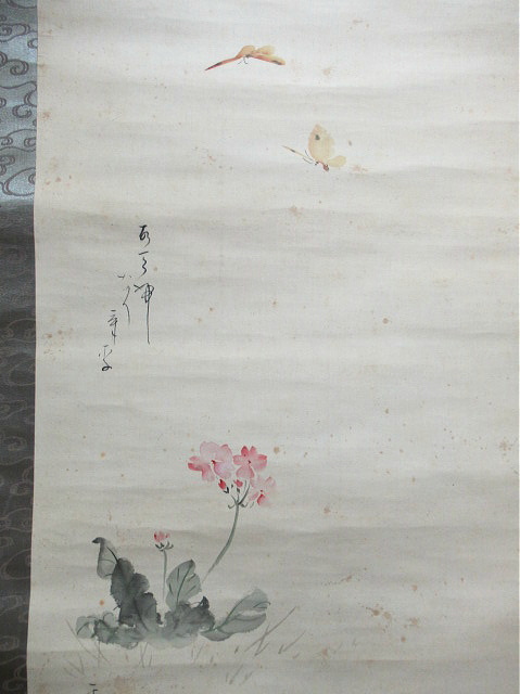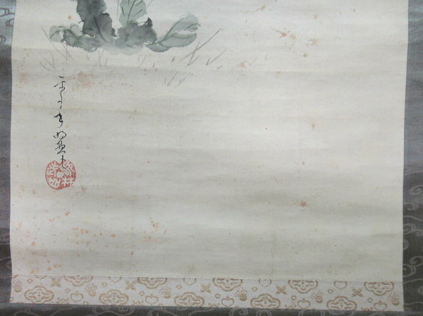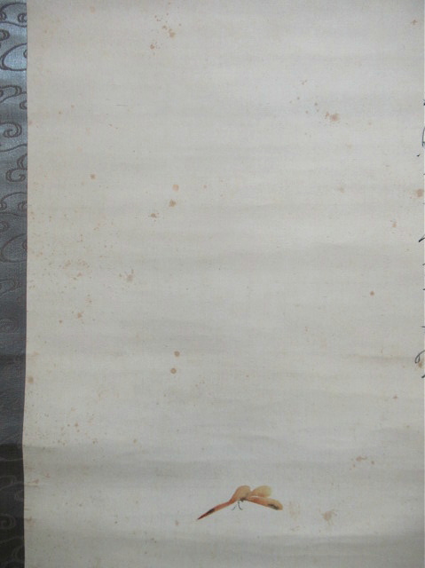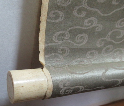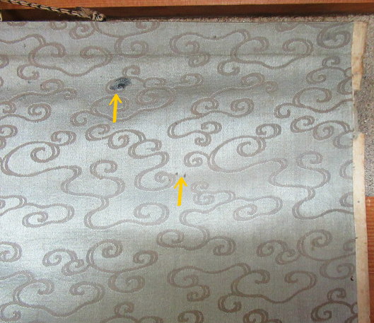 矢印の先は、汚れです。また表装の端に破れあります。