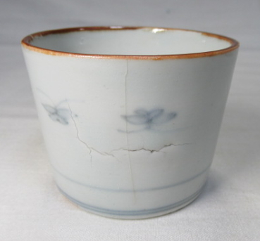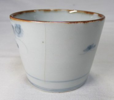 全体に柔らかい磁貫におおわれています。口縁から裾まで薄い釉割れあります。