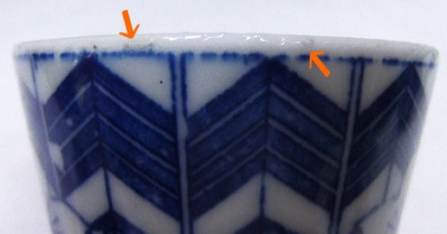 口縁には外側内側に小さな虫食いが見られ、虫食いの箇所は、見た目よりも手触りで判るといった感じです。