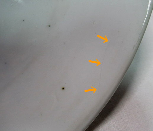 器面に細い筋が見えますが、陶器の皺のようなものです。特に問題はございません。