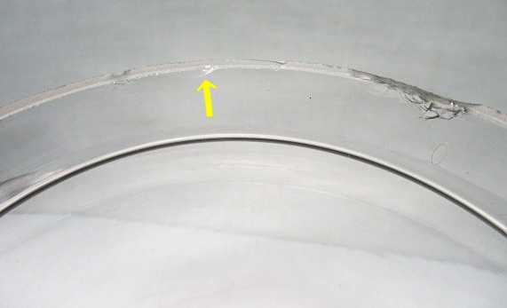 こちらにも軽微ですが、外側に小さな削げが見られます。
