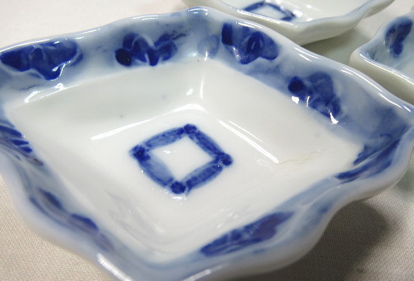 口縁立上りは梅の花のような葉っぱの様な模様が可愛らしいです。