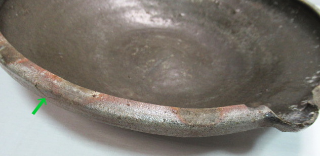 横からの画像です。窯傷です。貫通しているヒビではありません。