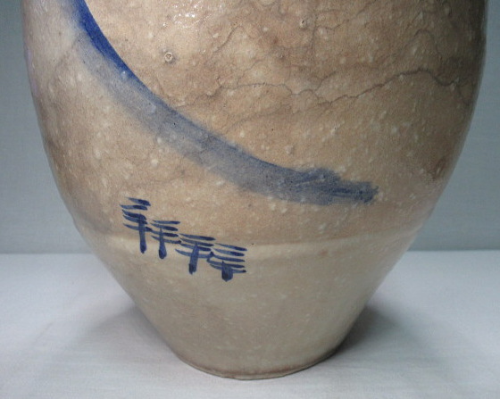 中央に釉爆ぜ見られます。また中央から斜め下に向かって2本筋が見られますがニュウなどの傷ではございません。