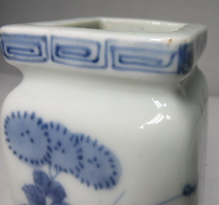 矢印の先、小さな虫食い。僅かに釉薬が剥がれています。 こちらは虫食い・窯傷です。後で出来た傷ではございません。 脚周りは縁や底に近い部分を中心に小削げなど複数ヶ所見られます。 注文番号:NO.8975 閉じる