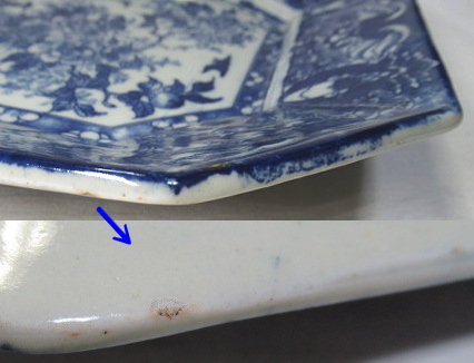 側面下側(裏側)にある小削げと裏側の拡大画像。