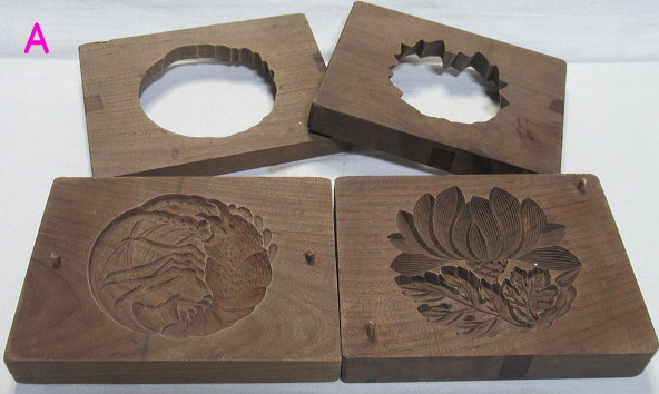 日の出に松、蓮の花、松茸