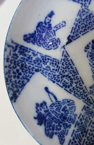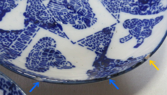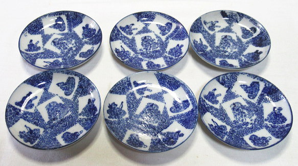小野小町・僧正遍照 文屋康秀・喜撰法師 大伴黒主・在原業平 おまけでお付けする3枚です。口縁に大変軽微な削げがありますが、殆ど気になりません。 削げの拡大画像。 削げの拡大画像。 削げの拡大画像。黄矢印は釉爆ぜで削げではありません。 注文番号:NO.9916-B 閉じる