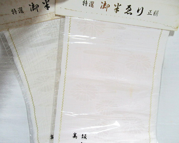 正絹の半衿 5枚。(手前の淡いピンク系2枚・奥の白系3枚)