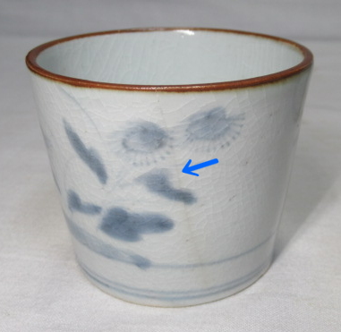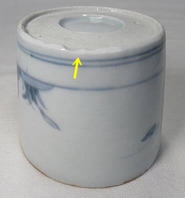 薄い釉割れあります。黄矢印部分は8ミリ程度で見落とすくらいです。