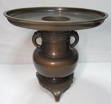 時代を経た銅の味わいが渋くて、美しいですね。縁から胴部にかけて細かな模様が見事です。窓絵に描かれた「龍」「神亀」「鳳凰」「麒麟」も良く描かれていて立派です。持ち手も無垢でどっしりとしていて、重厚感に溢れていますね。底には「大日本文政年整珉鋳」の名款が入っております。四足の造りも凝っていて、良く出来た水盤ですね。