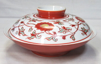 山越弘悦 赤絵花唐草紋蓋平茶碗