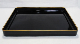 黒に金彩の縁取りがとても美しい塗りのお盆です。切手盆より少し大きめのサイズですが、コンパクトな大きさです。使用感も殆どなくとても綺麗なお品です。お盆ですが、お皿のように使うのもありですね。