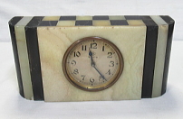 Aのマーク、ドイツ製の置時計です。チェス盤のような市松模様にシャープな縦縞、ブラック&ホワイトのお洒落なデザインの置時計です。シャープなだけでなく角は大きくアールにカーブさせた所などは本当にいいですね。隅々までデザイン性にこだわったお品です。ネジを巻いて動きますが、すぐに止まるのでレトロなオブジェとしてお求めください。